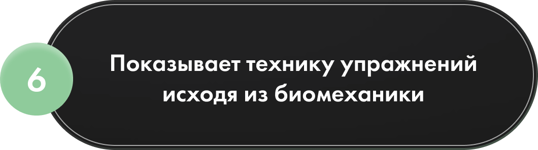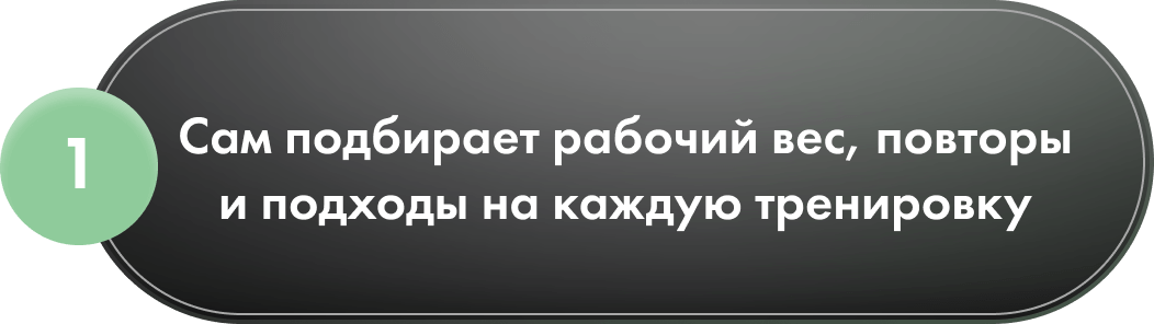 Автоматически составит индивидуальную программу тренировок и будет адаптировать вес, повторы и подходы с учетом твоих возможностей и результатов по системе АБСТ