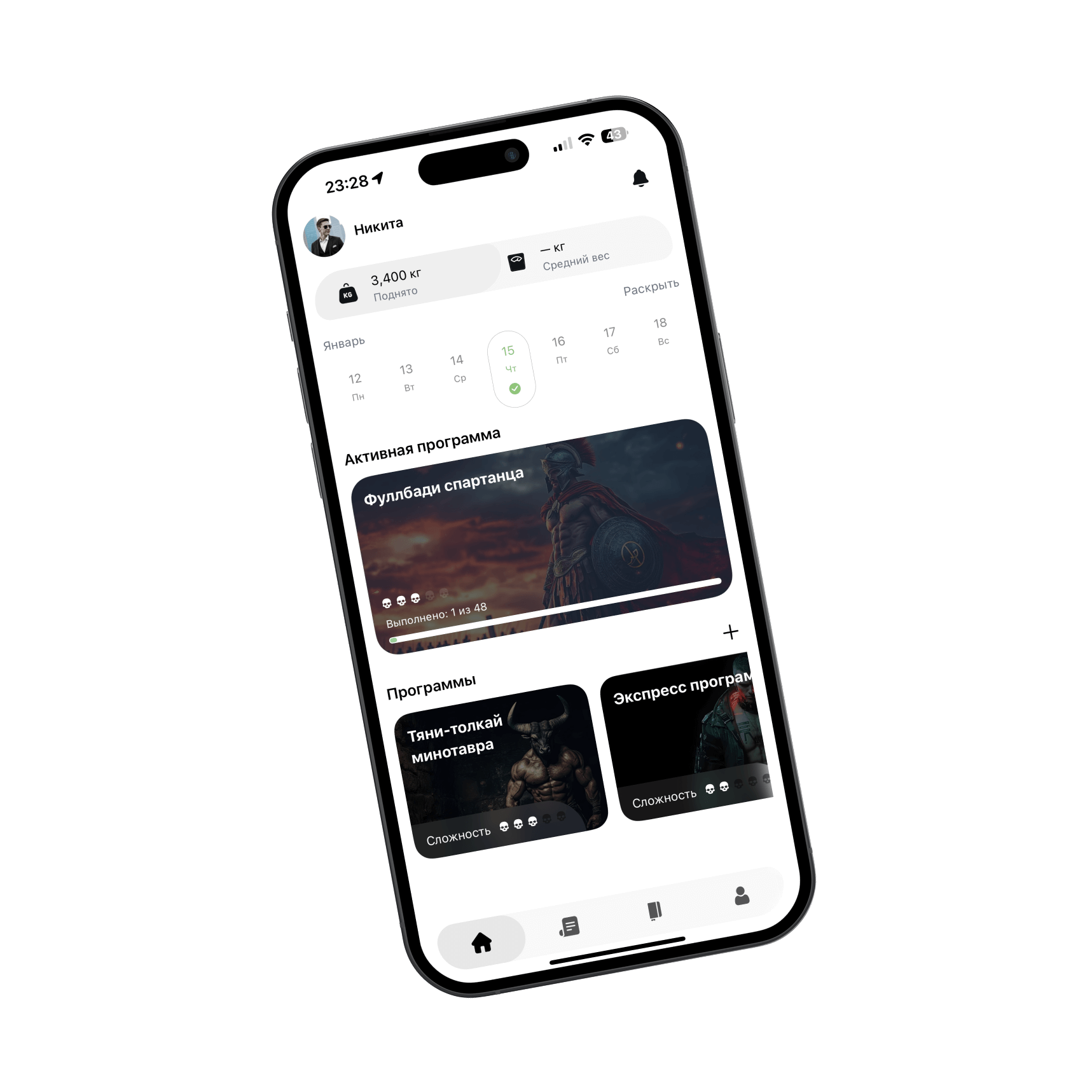 ИИ создаёт план под вашу цель (масса/жиросжигание/сила), уровень, оборудование, здоровье и даже дни недели